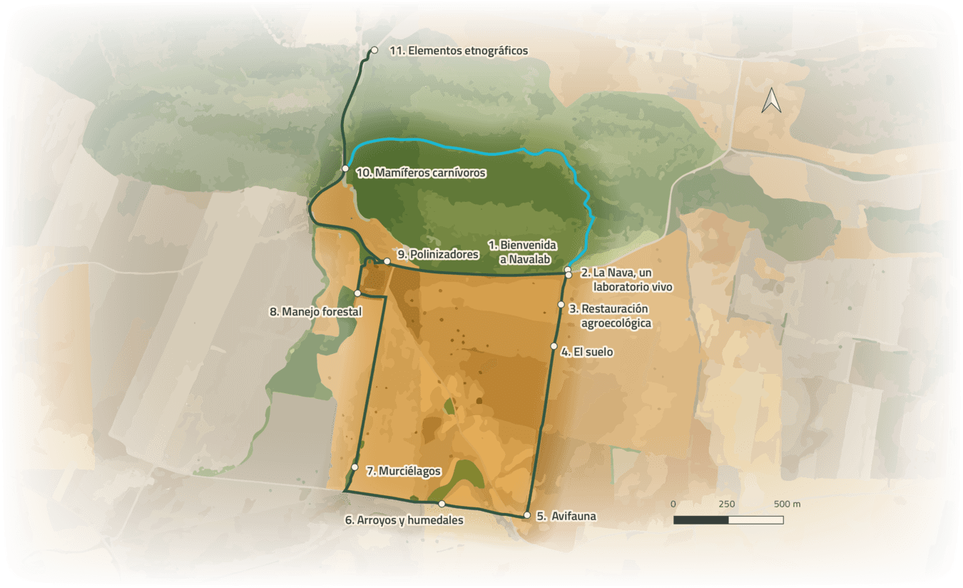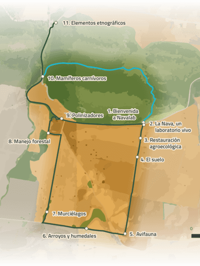 La experiencia NavaLAB es un proyecto de demostración y divulgación científica en torno a la agricultura regenerativa y la silvicultura de la dehesa y el monte mediterráneo a través de la creación de una ruta agroturística autoguiada.